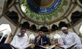 REPUBLIKA.CO.ID, LHOKSEUMAWE -- Pengurus remaja masjid membaca Al Quran di Masjid Syuhada Lhokseumawe, Aceh, Selasa (12/4/2022) malam. Remaja masjid kembali aktif melaksanakan ibadah tadarus Ramadhan 1443 Hijriah setelah adanya pelonggaran PPKM COVID-19 dari pemerintah.
