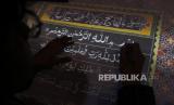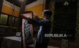 REPUBLIKA.CO.ID, LAWEYAN -- Perajin membentangkan kain batik bermotif ayat suci Al Quran di Mahkota Batik Laweyan, Solo, Jawa Tengah, Rabu (13/4/2022). Selain untuk menarik kunjungan wisatawan di kampung batik Laweyan, produk kain batik tulis bermotif ayat Al Quran tersebut dibuat sebagai mushaf untuk mengajak masyarakat belajar menulis, membaca dan memahami Al Quran.