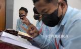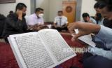 REPUBLIKA.CO.ID, BANDUNG -- Sejumlah siswa penyandang disabilitas rungu wicara membaca Alquran menggunakan bahasa isyarat saat Pesantren Kilat Ramadhan di Pusat Pelayanan Sosial Griya Harapan Difabel Dinsos Jabar, Jalan Jend H Amir Machmud, Kota Cimahi, Rabu (13/4/2022). Pesantren Ramadhan yang diikuti oleh sedikitnya 80 siswa penyandang disabilitas tersebut dalam rangka mengisi waktu luang di bulan Ramadhan dengan memperdalam ilmu agama dengan membaca Alquran, ibadah, dan hafalan doa.Foto: Republika/Ab