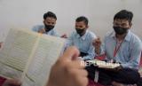 Sejumlah siswa penyandang disabilitas rungu wicara membaca Alquran menggunakan bahasa isyarat saat Pesantren Kilat Ramadhan di Pusat Pelayanan Sosial Griya Harapan Difabel Dinsos Jabar, Jalan Jend H Amir Machmud, Kota Cimahi, Rabu (13/4/2022). Pesantren Ramadhan yang diikuti oleh sedikitnya 80 siswa penyandang disabilitas tersebut dalam rangka mengisi waktu luang di bulan Ramadhan dengan memperdalam ilmu agama dengan membaca Alquran, ibadah, dan hafalan doa. Foto: Republika/Abdan Syakura (FOTO : REPUBLIKA/ABDAN SYAKURA)