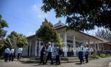 Sejumlah siswa penyandang disabilitas berjalan menuju masjid untuk mengikuti Pesantren Kilat Ramadhan di Pusat Pelayanan Sosial Griya Harapan Difabel Dinsos Jabar, Jalan Jend H Amir Machmud, Kota Cimahi, Rabu (13/4/2022). Pesantren Ramadhan yang diikuti oleh sedikitnya 80 siswa penyandang disabilitas tersebut dalam rangka mengisi waktu luang di bulan Ramadhan dengan memperdalam ilmu agama dengan membaca Alquran, ibadah, dan hafalan doa. Foto: Republika/Abdan Syakura (FOTO : REPUBLIKA/ABDAN SYAKURA)