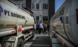 REPUBLIKA.CO.ID, BANDUNG -- Petugas kepolisian menunjukan barang bukti dari kasus dugaan penimbunan solar bersubsidi di Polda Jawa Barat, Bandung, Jawa Barat, Rabu (13/4/2022). Ditreskrimsus Polda Jawa Barat berhasil mengungkap kasus dugaan penimbunan solar bersubsidi dengan mengamankan tujuh orang tersangka berikut barang bukti 22 ton atau 25 ribu liter solar yang diamankan dari dua lokasi yaitu Indramayu dan Tasikmalaya dengan total kerugian negara mencapai sekitar Rp465 juta.