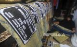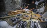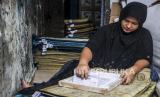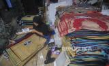 Perajin melipat sajadahyang telah disablon di kawasan Kebon Melati, Tanah Abang, Jakarta, Kamis (14/4/2022). Menurut perajin pada bulan Ramadhan kali ini permintaan jasa sablon sajadah meningkat 50 persen dengan pesanan mencapai 20 kodi per hari yang dibandrol dengan tarif Rp 1.500 per sajadah. Republika/Putra M. Akbar (FOTO : Republika/Putra M. Akbar)