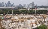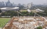 REPUBLIKA.CO.ID, JAKARTA -- Foto udara proyek pembangunan Indoor Multifunction Stadium (IMS) di kompleks Gelora Bung Karno (GBK), Senayan, Jakarta, Kamis (14/4/2022). Pembangunan stadion seluas 30.720 meter persegi tersebut ditujukan untuk mendukung pelaksanaan Piala Dunia Basket (FIBA) tahun 2023 mendatang dan ditargetkan rampung pada bulan Juni 2023.