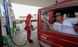 REPUBLIKA.CO.ID, JAMBI -- Petugas mengisi BBM ke kendaraan konsumen di SPBU 24.361.77 Mayang Mangurai, Kota Baru, Jambi, Kamis (14/4/2022). Pertamina Patra Niaga Regional Sumbagsel mengerahkan 384 unit armada mobil tangki, 27 unit bridger avtur, dan menyiapkan 174 unit skid tank untuk LPG, serta 16 titik SPBU kantung dan 15 titik layanan motoris pada jalur mudik guna mengamankan pasokan energi selama Ramadhan dan mudik Lebaran tahun 2022.