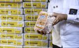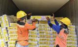 Pekerja menata kardus berisi daging kerbau impor yang tiba di Terminal Mustika Alam Lestari, Tanjung Priok, Jakarta Utara, Kamis (14/4/2022). Pemerintah melalui Perum BULOG mendatangkan daging kerbau impor dari India untuk tahap kedua yang diperkirakan akan tiba sampai dengan lebaran mendatang sebanyak 36 ribu ton yang digunakan untuk alternatif pilihan bagi konsumen. (FOTO : Antara/M Risyal Hidayat)