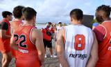 REPUBLIKA.CO.ID, BADUNG -- Pelatih tim nasional bola basket 3x3 Indonesia Ali Budimansyah (tengah) memberikan instruksi saat sesi latih tanding di kawasan Kuta, Badung, Bali, Kamis (14/4/2022).Tim nasional bola basket 3x3 Indonesia menjalani pemusatan latihan di Bali dan akan mengikuti ABL 3x3 International Champions Cup 2022 di Bali pada 16-17 April sebagai persiapan menjelang SEA Games Hanoi, Vietnam.