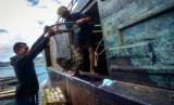REPUBLIKA.CO.ID, AMBON -- Sejumlah pekerja memindahkan ikan hidup dari keramba ke kapal di keramba PT Rajawali Laut Timur, di Kota Ambon, Provinsi Maluku, Jumat (15/4/2022). Berdasarkan data Badan Karantina Ikan, Pengendalian Mutu dan Keamanan Hasil Perikanan (BKIPM), selama 2021 produk perikanan Maluku menembus pasar ekspor ke delapan negara di Asia dan Amerika.