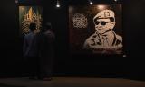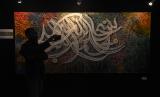 REPUBLIKA.CO.ID, JAKARTA -- Pengunjung mengamati karya dalam pembukaan Pameran Kaligrafi Kontemporer Internasional di Masjid Raya Jakarta Islamic Centre, Jakarta Utara, Jumat (15/4/2022). Pameran yang digelar dalam rangkaian peringatan Nuzulul Quran tersebut menghadirkan lebih dari 100 karya seniman kaligrafi dari 26 negara dan berlangsung dari 15-22 April 2022.