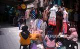 Pengunjung memadati los pakaian Pasar Beringharjo, Yogyakarta, Ahad (17/4/2022). Los pakaian Pasar Beringharjo mulai dipadati pembeli memasuki pekan ke-3 Ramadhan. Selain berbelanja untuk sendiri, pengunjung juga membeli pakaian untuk bingkisan lebaran Idul Fitri. (FOTO : Wihdan Hidayat / Republika)