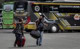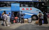 Calon penumpang bus berjalan di Terminal Poris Plawad, Kota Tangerang, Banten, Senin (18/4/2022). Memasuki minggu ketiga bulan Ramadhan, terminal tersebut terpantau mulai ramai pemudik. (FOTO : ANTARA/Fauzan)