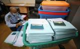 REPUBLIKA.CO.ID, JAKARTA -- Petugas merapikan paspor di Kantor Imigrasi Jakarta Barat, Senin (18/4/2022).