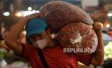 REPUBLIKA.CO.ID, Warga memanggul cabai di Pasar Induk Kramat Jati, Jakarta, Senin (18/4/2022). Menurut sejumlah pedagang, pada hari ke-16 puasa Ramadhan 1443 H harga sejumlah komoditas pangan di Pasar Induk Kramat Jati relatif stabil seperti bawang merah berkisar Rp22ribu-35ribu/kg, bawang putih kating Rp28ribu/kg, cabai rawit Rp20ribu-25ribu/kg, dan cabai merah keriting Rp23ribu/kg.
