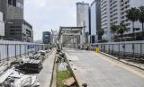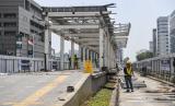REPUBLIKA.CO.ID, JAKARTA -- Pekerja menyelesaikan proyek revitalisasi Halte TransJakarta Bundaran Hotel Indonesia di Jakarta, Senin (18/4/2022). PT TransJakarta menutup sementara sembilan halte TransJakarta saat proses konstruksi revitalisasi halte yang akan berlangsung sekitar enam bulan dan akan difungsikan kembali secara bertahap sampai dengan diselesaikan secara keseluruhan pada Desember 2022.