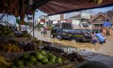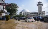 Ambulans melintasi genangan air saat banjir menggenangi Jalan Raya Dayeuhkolot, Kecamatan Dayeuhkolot, Kabupaten Bandung, Selasa (19/4/2022). Banjir akibat intensitas curah hujan yang tinggi dan meluapnya Sungai Citarum tersebut menyebabkan sedikitnya empat kecamatan di Kabupaten Bandung terendam banjir setinggi 50 sentimeter hingga 170 sentimeter. Foto: Republika/Abdan Syakura (FOTO : REPUBLIKA/ABDAN SYAKURA)