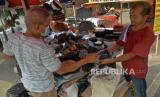 Seorang pembeli memilih peci yang akan dibelinya di Kawasan Masjid Agung Sunda Kelapa, Jakarta, Selasa (19/4/2022). Selama bulan suci Ramadhan, permintaan peci meningkat 20 persen dan peci tersebut dijual mulai dari Rp5 ribu hingga Rp150 ribu per peci. (FOTO : Prayogi/Republika.)