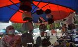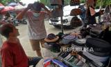 Seorang pembeli mencoba peci yang akan dibelinya di Kawasan Masjid Agung Sunda Kelapa, Jakarta, Selasa (19/4/2022). Selama bulan suci Ramadhan, permintaan peci meningkat 20 persen dan peci tersebut dijual mulai dari Rp5 ribu hingga Rp150 ribu per peci. Prayogi/Republika. (FOTO : Prayogi/Republika.)