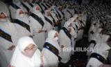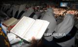 REPUBLIKA.CO.ID, BOGOR -- Sejumlah peserta mengikuti wisuda program Bogor Mengaji di GOR Indoor Pajajaran, Kota Bogor, Jawa Barat, Selasa (19/4/2022). Sebanyak 1.500 peserta dari 68 kelurahan se-Kota Bogor mengikuti wisuda program Bogor Mengaji angkatan pertama yang bertujuan untuk memberantas buta aksara Al Quran di kalangan orang tua dan lansia