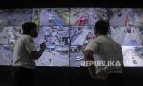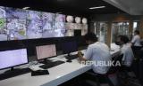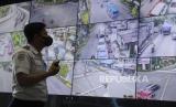 REPUBLIKA.CO.ID, SOLO -- Petugas Dinas Perhubungan (Dishub) Solo memantau arus lalu lintas dari layar monitor kamera closed circuit television (CCTV) di ruang kontrol Dishub Solo, Jawa Tengah, Selasa (19/4/2022). Dishub Kota Solo memprediksi sebanyak 7,4 juta kendaraan bermotor dari pemudik akan melintasi Kota Solo saat arus mudik dan arus balik Lebaran 2022 mendatang.