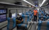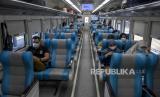 Penumpang berada di dalam rangkaian kereta api Argo Parahyangan di Stasiun Bandung, Kota Bandung, Rabu (20/4/2022). PT KAI Daop 2 Bandung memprediksi puncak arus mudik moda transportasi kereta api akan terjadi pada Sabtu (30/4/2022), dengan jumlah penumpang dari Stasiun Bandung ke arah timur sekitar 29.000 terhitung dari 28 April hingga 1 Mei 2022. Foto: Republika/Abdan Syakura (FOTO : REPUBLIKA/ABDAN SYAKURA)