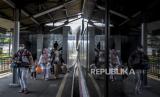 REPUBLIKA.CO.ID,BANDUNG -- Penumpang kereta api berjalan keluar setibanya di Stasiun Bandung, Kota Bandung, Rabu (20/4/2022).