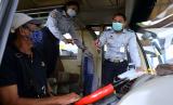 Petugas berbincang dengan pengemudi bus pariwisata saat melakukan pemeriksaan kelaikan kendaraan (ramp check) di Terminal Mengwi, Badung, Bali, Rabu (20/4/2022). Pemeriksaan kelaikan kendaraan itu dilakukan terhadap puluhan bus pariwisata yang disiapkan sebagai angkutan Lebaran tambahan selama masa mudik untuk menjamin keamanan dan keselamatan pemudik (FOTO : ANTARA/Fikri Yusuf)