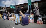 Sejumlah calon penumpang memasukkan barang bawaanya ke dalam bagasi bus di Terminal Kalideres, Jakarta, Rabu (20/4/2022). Memasuki minggu ketiga bulan Ramadhan, Terminal Kalideres terpantau mulai ramai oleh pemudik dengan tujuan Padang, Jawa Timur, Jawa Tengah, dan diprediksi pada 26 April 2022 menjadi puncak arus mudik di terminal tersebut (FOTO : ANTARA/Fauzan)