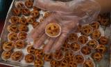 REPUBLIKA.CO.ID, KEDIRI -- Pekerja menunjukan pie nanas di Rumah Pie Candaria, Kediri, Jawa Timur, Rabu (20/4/2022). Memasuki pekan ketiga bulan Ramadhan, produksi pie nanas yang dipasarkan secara daring tersebut meningkat hingga 10 kali lipat dari sebelumnya 100 buah menjadi 1000 buah per hari guna memenuhi permintaan dari sejumlah daerah.