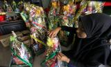 REPUBLIKA.CO.ID, LHOKSEUMAWE -- Pekerja menghias parsel lebaran yang dijual di sebuah toko di Lhokseumawe, Aceh, Selasa (19/4/2022). Selain dipajang di toko, parsel Idul Fitri 1443 H yang dijual dari harga Rp150 ribu hingga Rp1,5 juta per buah tersebut juga dipasarkan secara daring untuk menjangkau pembeli.
