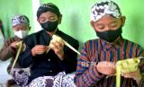 Siswa SD Membuat Ketupat Pakai Pakaian Adat Jawa