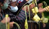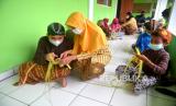 REPUBLIKA.CO.ID,YOGYAKARTA -- Siswa menggunakan pakaian adat Jawa membuat ketupat di SD Winongo, Bantul, Yogyakarta, Rabu (21/4/2022).