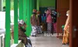 Siswa menggunakan pakaian adat Jawa masuk sekolah di SD Winongo, Bantul, Yogyakarta, Rabu (21/4/2022). Siswa SD menggunakan pakaian adat Jawa dalam rangka memperingati Hari Kartini. Kebetulan Hari Kartini tahun ini bertepatan dengan Ramdhan, sehingga siswa diberikan latihan membuat ketupat. (FOTO : Wihdan Hidayat / Republika)