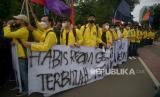 REPUBLIKA.CO.ID,JAKARTA -- Ratusan mahasiswa menggelar aksi unjuk rasa 21 April di kawasan Patung Kuda, Jakarta, Kamis (21/4/2022).