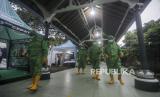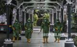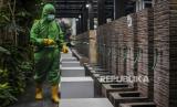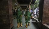 Petugas menyemprotkan disinfektan usai acara edukasi kesehatan lambung di Masjid Agung Sunda Kelapa, Jakarta, Kamis (21/4/2022). PT Kalbe Farma Tbk. (Kalbe) melalui brand Promag bekerja sama denga Ikatan Dokter Indonesia (IDI) menggelar edukasi dan sosialisasi pentingnya menjaga kesehatan lambung menggunakan Maag Meter, Yaitu alat ukur kesehatan berbasis dihital untuk mengecek kondisi lambung. Selain edukasi Kalbe juga melakukan disinfeksi dan bersih-bersih 750 masjid. (FOTO : Republika/Putra M. Akbar)