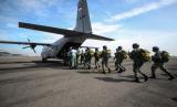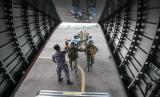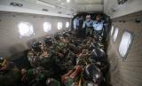 Sejumlah siswa Pendidikan Komando Pasukan Katak (Dikkopaska) Angkatan tahun 2022 memasuki pesawat CASA 6216 milik skuadron Udara 600 Wing Udara 2 Puspenerbal Juanda saat latihan terjun dasar di Sidoarjo, Jawa Timur, Jumat (22/4/2022). Sebanyak 49 siswa mengikuti Latihan Teknik (Lattek) Keparaan dari ketinggian 1.500 feet tersebut bertujuan untuk mengasah keahlian yang harus dimiliki oleh anggota Kopaska TNI AL. (FOTO : ANTARA/Umarul Faruq)