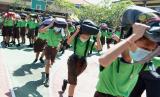 REPUBLIKA.CO.ID,BADUNG -- Sejumlah siswa berlari ke tempat aman saat simulasi gempa bumi dan tsunami di SMP Negeri 3 Kuta Selatan, Badung, Bali, Jumat (22/4/2022).