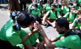 Siswa memberikan pertolongan pertama kepada siswa lainnya saat simulasi gempa bumi dan tsunami di SMP Negeri 3 Kuta Selatan, Badung, Bali, Jumat (22/4/2022). Simulasi kebencanaan yang dilakukan untuk meningkatkan kesiapsiagaan masyarakat dalam mengurangi risiko bencana itu merupakan salah satu rangkaian kegiatan Global Platform for Disaster Risk Reduction (GPDRR) yang puncak pertemuannya akan dilaksanakan pada 23-28 Mei 2022 di Nusa Dua Bali. (FOTO : ANTARA/Fikri Yusuf)