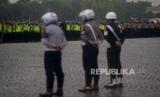 REPUBLIKA.CO.ID,JAKARTA -- Kapolri Jenderal Pol Listyo Sigit Prabowo dan Menteri Perhubungan Budi Karya Sumadi menghadiri Apel Gelar Pasukan Operasi Ketupat 2022 di Silang Monas, Jakarta, Jumat (22/4/2022).