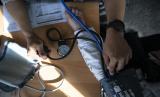 Prajurit Pangkalan TNI Angkatan Laut (Lanal) Palembang memeriksa kesehatan pemudik yang akan divaksin COVID-19 di Stasiun Kertapati Palembang Sumatera Selatan, Sabtu (23/4/2022). PT Kereta Api Indonesia (Persero) Divre III Palembang bekerja sama dengan Pangkalan TNI Angkatan Laut (Lanal) Palembang menyediakan layanan vaksinasi COVID-19 gratis bagi pemudik di Stasiun Kertapati Palembang. (FOTO : ANTARA/Nova Wahyudi)