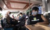 Prajurit Pangkalan TNI Angkatan Laut (Lanal) Palembang mendata pemudik yang akan divaksin COVID-19 di Stasiun Kertapati Palembang, Sumatera Selatan, Sabtu (23/4/2022). PT Kereta Api Indonesia (Persero) Divre III Palembang bekerja sama dengan Pangkalan TNI Angkatan Laut (Lanal) Palembang menyediakan layanan vaksinasi COVID-19 gratis bagi pemudik di Stasiun Kertapati Palembang. (FOTO : ANTARA/Nova Wahyudi)