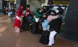 Sejumlah pemudik berpamitan dengan kerabatnya sebelum berangkat di area kedatangan bus Antar Kota Antar Provinsi (AKAP) di Terminal WA Gara, Palangka Raya, Kalimantan Tengah, Sabtu (23/4/2022). Sejumlah warga memilih mudik lebih awal ke sejumlah kota tujuan di daerah Kalimantan untuk menghindari harga tiket tinggi dan kepadatan penumpang saat puncak arus mudik mendatang. (FOTO : ANTARA/Makna Zaezar)