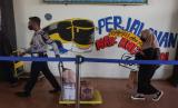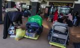 REPUBLIKA.CO.ID,PALANGKA RAYA -- Seorang pemudik menyiapkan barang bawaan sebelum berangkat saat berada di area kedatangan bus Antar Kota Antar Provinsi (AKAP) di Terminal WA Gara, Palangka Raya, Kalimantan Tengah, Sabtu (23/4/2022).