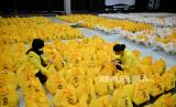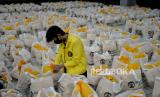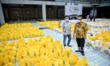 Pengurus Badan Eksekutif Mahasiswa Universitas Indonesia mengecek paket sembako sebelum didistribusikan kepada warga di Balairung Kampus UI, Depok, Jawa Barat, Sabtu (23/4/2022). Ikatan Alumni Universitas Indonesia (ILUNI UI) menyalurkan donasi sembako sebanyak 2.700 paket kepada karyawan outsourcing UI golongan 1 dan 2, serta warga Depok yang tersebar di daerah Beji Timur, Aula Pemkot Depok, dan di SDN Beji 2 Depok sebagai upaya meningkatak kepedulian kepada sesama. Republika/Thoudy Badai (FOTO : Republika/Thoudy Badai)