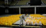 Pengurus Badan Eksekutif Mahasiswa Universitas Indonesia mengecek paket sembako sebelum didistribusikan kepada warga di Balairung Kampus UI, Depok, Jawa Barat, Sabtu (23/4/2022). Ikatan Alumni Universitas Indonesia (ILUNI UI) menyalurkan donasi sembako sebanyak 2.700 paket kepada karyawan outsourcing UI golongan 1 dan 2, serta warga Depok yang tersebar di daerah Beji Timur, Aula Pemkot Depok, dan di SDN Beji 2 Depok sebagai upaya meningkatak kepedulian kepada sesama. (FOTO : Republika/Thoudy Badai)
