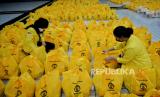 REPUBLIKA.CO.ID,DEPOK -- Pengurus Badan Eksekutif Mahasiswa Universitas Indonesia mengecek paket sembako sebelum didistribusikan kepada warga di Balairung Kampus UI, Depok, Jawa Barat, Sabtu (23/4/2022).