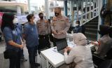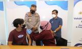Dirbinmas Polda Metro Jaya Kombespol Badya Wijaya (kiri) dan Compliance and Risk Management Director Asuransi Astra Adi Sepiarso (kanan) berbincang dengan peserta vaksin pada acara Vaksinasi Merdeka Booster di Grha Asuransi Astra, Jakarta Sabtu (23/04/2022). (FOTO : dok. istimewa)