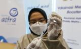 Petugas medis menunjukan dua vaksin pada acara Vaksinasi Merdeka Booster di Grha Asuransi Astra, Jakarta Sabtu (23/04/2022). (FOTO : dok. istimewa)