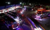 Sejumlah bus antarkota antarprovinsi (AKAP) yang membawa pemudik menunggu jadwal keberangkatan di Terminal tipe A Batoh, Banda Aceh, Aceh, Sabtu (23/4/2022). Terminal bus AKAP yang malayani transportasi dengan tujuan berbagai provinsi di Pulau Sumatera dan Jawa itu mulai dipadati pemudik yang didominasi para mahasiswa dan pekerja bangunan untuk merayakan Hari Raya Idul Fitri 1443 di kampung halaman. (FOTO : ANTARA/Irwansyah Putra)