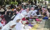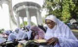 REPUBLIKA.CO.ID, BOGOR -- Sejumlah umat muslim membaca Al-Quran pada kegiatan Bogor Ngaos Al-Quran di Lawang Salapan, Kota Bogor, Jawa Barat, Ahad (24/4/2022). Kegiatan Bogor Ngaos Al-Quran yang diikuti sebanyak 1.000 peserta dari 63 komunitas itu bertujuan untuk mensyiarkan Al-Quran di bulan suci Ramadhan 1443 Hijriah.