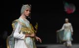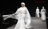 REPUBLIKA.CO.ID, JAKARTA -- Model memperagakan busana D.J.H.N pada penutupan Muslim Fashion Festival+ 2022 (MUFFEST+2022) di The Ritz Carlton, Pacific Place, Jakarta, Sabtu (23/4/2022).